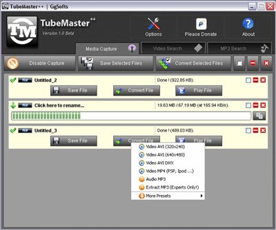 TubeMaster++ là một giải pháp tiện dụng, cho phép người dùng tải về các tập tin đa phương tiện (FLV, MP3, MP4) đang được phát trên trình duyệt web.