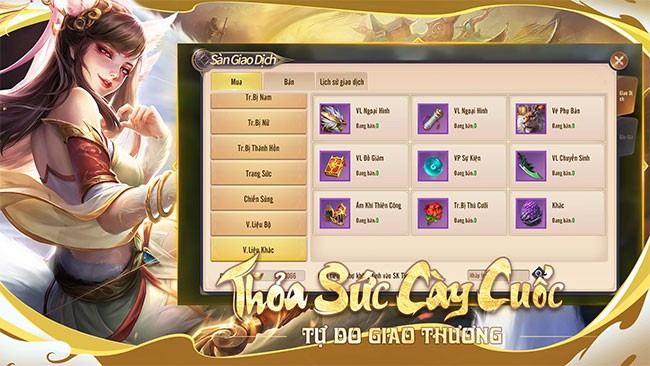 Bên cạnh đó, game còn tạo điều kiện cho người chơi giao dịch, mua bán theo xu hướng hiện đại. Thay vì hình thức truyền thống, giao thương diễn ra trên sàn đấu giá trực tuyến. Bạn có thể trao đổi vật phẩm với những người chơi khác để tìm kiếm cơ hội hời. Hãy tải game Tuyệt Thế Kiếm Vương cho iOS và sẵn sàng chinh phục giang hồ.