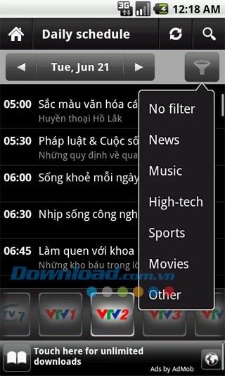 Được đánh giá là một trong những ứng dụng lịch phát sóng điện tử tốt nhất hiện nay trên nền tảng Android, tvonhand hỗ trợ cả tiếng Anh và tiếng Việt (mặc định) với giao diện trực quan, dễ sử dụng.