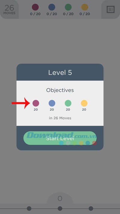 Mỗi màn chơi sẽ có một mục tiêu cụ thể về số lượng chấm màu cần xóa. Dựa vào mục tiêu này, bạn sẽ tập trung nối các chấm màu tương ứng để vượt qua các cấp độ và khám phá thế giới đầy màu sắc của Two Dots.
