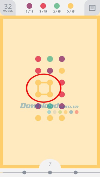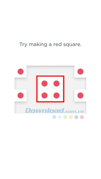 Hoàn thành các ô vuông bằng cách nối các chấm để loại bỏ hoàn toàn các chấm màu đỏ khỏi màn chơi.