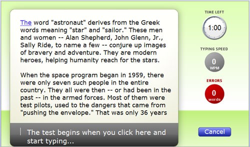 TypingTest.com là điểm khởi đầu lý tưởng để bạn đánh giá trình độ đánh máy nhanh của mình. Nền tảng này cho phép bạn tùy chọn thời gian luyện tập và loại văn bản mẫu.