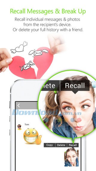 Thu hồi tin nhắn, ảnh và biểu tượng cảm xúc đã gửi, loại bỏ chúng khỏi thiết bị của người nhận sau khi đã xem.