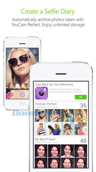 Khởi tạo nhật ký ảnh tự sướng, U Messenger sẽ tự động lưu trữ ảnh chụp từ ứng dụng YouCam Perfect, mang đến cho bạn một kho lưu trữ ảnh không giới hạn.