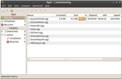 Uget là một công cụ quản lý tải xuống được xây dựng trên nền tảng gtk+ và libcurl. Phần mềm này có khả năng phân loại các đường dẫn URL trước khi tiến hành tải, đồng thời cho phép người dùng nhập trực tiếp URL của các tập tin HTML.