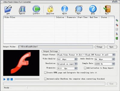 Với giao diện thiết lập đơn giản, chương trình giúp bạn chuyển đổi video thành các file FLV một cách nhanh chóng và thuận tiện. Kết quả là bạn sẽ có được những đoạn phim FLV và SWF chất lượng cao, sẵn sàng để chia sẻ trực tuyến.