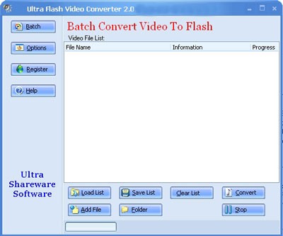 Ultra Video To Flash Converter là giải pháp hữu ích để bạn có thể chuyển đổi các file FLV sang nhiều định dạng phổ biến như AVI, WMV, MPG, MOV và ngược lại một cách nhanh chóng.