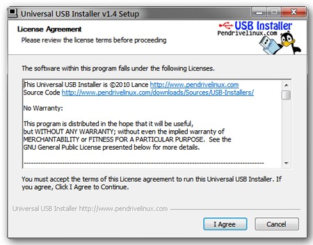 Sau khi tải về, bạn chỉ cần kích đúp vào tập tin Universal-USB-Installer.exe để khởi chạy chương trình mà không cần thực hiện cài đặt. Nếu hệ thống hiển thị thông báo UAC, hãy nhấn Yes để xác nhận. Bạn sẽ được chào đón bằng giao diện chính của chương trình. Tiếp theo, chọn tùy chọn I Agree để đồng ý với các điều khoản sử dụng.