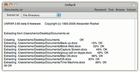 Việc giải nén file RAR với UnRarX diễn ra vô cùng nhanh chóng và dễ dàng.