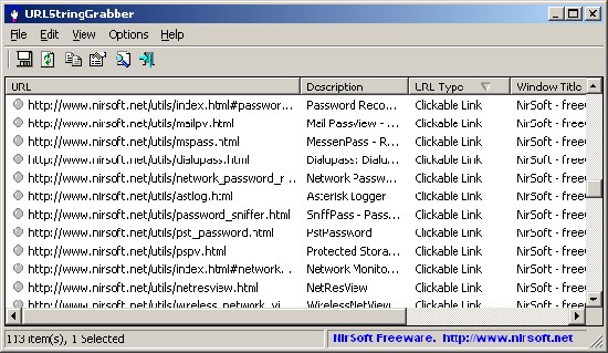 URLStringGrabber 1.0 là một tiện ích đơn giản, được thiết kế để thu thập toàn bộ các đường dẫn URL từ tất cả các cửa sổ trình duyệt Internet Explorer đang hoạt động. Công cụ này có khả năng lấy các URL liên kết, hình ảnh, tập lệnh, file CSS, nguồn RSS và file flash (.swf).