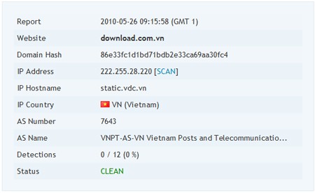 URLVoid là một công cụ trực tuyến, cho phép người dùng kiểm tra mức độ an toàn của các trang web một cách miễn phí. Dịch vụ này sử dụng cơ sở dữ liệu được cập nhật liên tục, đối chiếu với kết quả từ 9 bộ máy quét virus phổ biến, bao gồm: BrowserDefender, Google Diagnostic, MalwareDomainList, McAfee SiteAdvisor, McAfee Trusted Secure, MyWOT, Norton SafeWeb, TrendMicro Web Reputation và Web Security Guard.