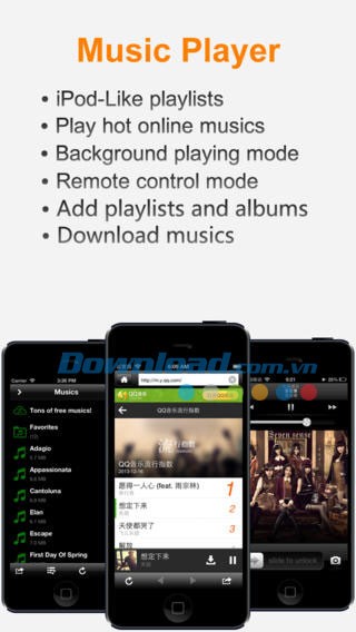 Ứng dụng cung cấp khả năng tạo playlist, phát nhạc nền khi sử dụng các ứng dụng khác, điều khiển phát nhạc từ xa và tương thích hoàn toàn với AirPlay, giúp bạn dễ dàng chiếu video lên màn hình lớn của Apple TV.