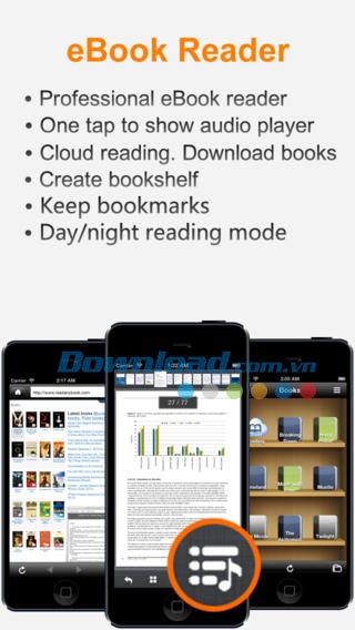 Ứng dụng hỗ trợ nhiều định dạng tài liệu như PDF, ePub, các file văn bản MS Office, iWork, tài liệu HTML, TXT. Bạn có thể xây dựng thư viện eBook cá nhân để quản lý tài liệu một cách khoa học.
