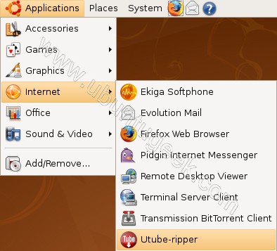 Để khởi động chương trình, bạn hãy truy cập vào menu Applications--->Internet--->Utube-ripper. Hoặc tìm đến Applications ---> Internet ---> uTube-ripper.