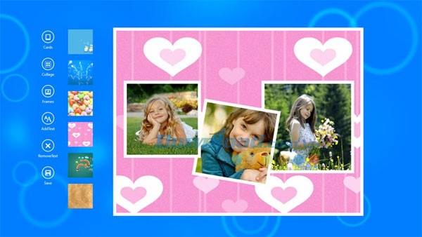 Valentine's Collage là một ứng dụng được thiết kế dành cho hệ điều hành Windows 8, cho phép người dùng dễ dàng tạo ra những bức ảnh cắt dán ấn tượng. Phần mềm này mang đến khả năng tạo ảnh ghép với chủ đề Lễ tình nhân, giúp bạn thể hiện tình cảm một cách lãng mạn và ngọt ngào dành cho người yêu thương.