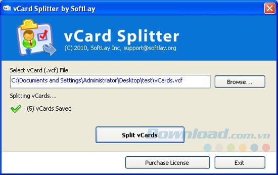 Công cụ này sẽ tự động tạo ra các file riêng biệt, mỗi file tương ứng với một số liên lạc trong file vCard gốc, và lưu trữ chúng một cách độc lập.