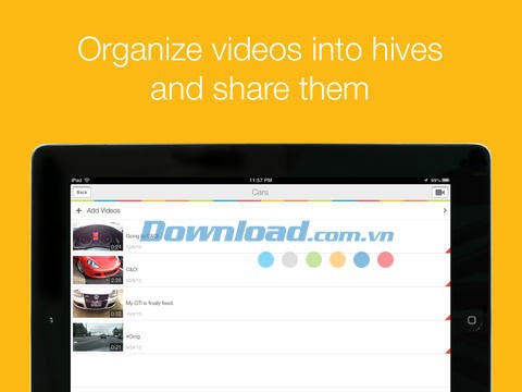 Ứng dụng Veehive dành cho iOS cung cấp cho người sử dụng quyền kiểm soát tuyệt đối đối với việc xem video. Bạn có thể lựa chọn từ các nhóm được tạo sẵn, nhanh chóng thiết lập một nhóm mới hoặc chia sẻ video trực tiếp lên các nền tảng mạng xã hội như Facebook và Twitter .