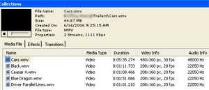 Cửa sổ Collections, nằm ở góc trên cùng bên trái, là nơi bạn nhập danh sách các file video cần chỉnh sửa và ghép nối. Việc này được thực hiện bằng cách chọn menu File > Open.