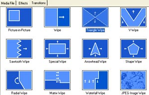 Truy cập mục Transitions trong cửa sổ Collections, nhấp đúp vào hiệu ứng mong muốn và chọn OK. Chương trình cung cấp nhiều hiệu ứng thú vị như tạo thanh quét màn hình theo chiều kim đồng hồ, hình lỗ khóa, tam giác, ngũ giác, răng cưa…