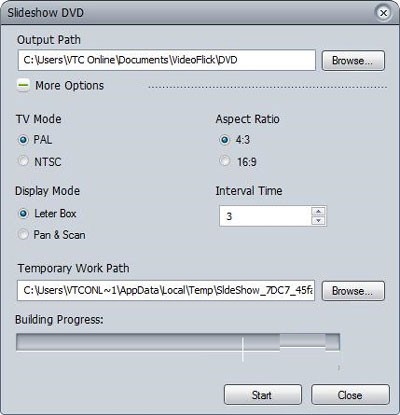 VideoFlick cho phép bạn dễ dàng tạo ra một đĩa DVD trình chiếu ảnh có thể phát trên các đầu DVD thông thường, nhờ vào tính năng DVD tích hợp.