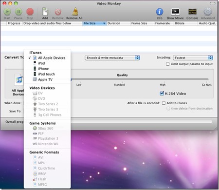 VideoMonkey là một ứng dụng chuyên dụng để chuyển đổi định dạng video, được phát triển dựa trên nền tảng mã nguồn mở của VisualHub dành cho hệ điều hành Mac OS. Điểm nổi bật của phần mềm này là giao diện trực quan, dễ sử dụng và thân thiện với người dùng.
