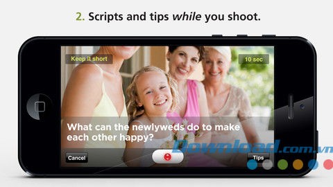 Ứng dụng cung cấp một máy nhắc chữ – công cụ hỗ trợ người dẫn chương trình đọc bản tin trên màn hình trước mặt, trong khi khán giả không thấy – để gợi ý cho từng cảnh quay. Kịch bản giúp bạn chuẩn bị những câu hỏi cần thiết cho khách mời trong sự kiện. Bên cạnh đó, các thủ thuật sẽ đưa ra những gợi ý cải thiện chất lượng video, bao gồm ánh sáng và góc quay...