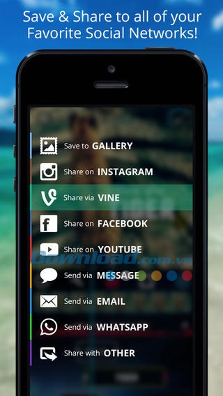 Lưu video đã chỉnh sửa vào thư viện ảnh của thiết bị hoặc chia sẻ chúng trên các mạng xã hội yêu thích như Vine và Instagram.