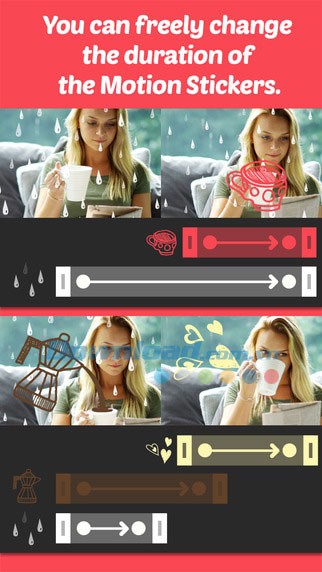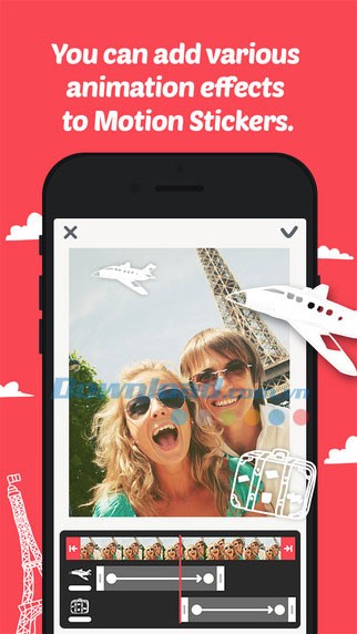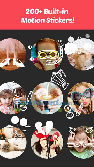 Điểm nổi bật của Vimo chính là những hình dán sticker động (Motion Stickers). Chúng giúp biến đổi những thước phim thông thường thành những tác phẩm vui nhộn và hấp dẫn hơn.