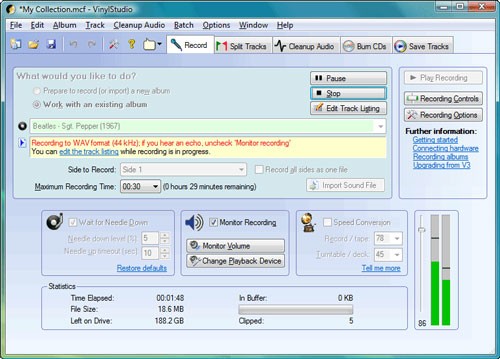 VinylStudio cung cấp đầy đủ các chức năng cần thiết để số hóa các bản ghi âm, chuyển đổi chúng sang các định dạng phổ biến như CD, MP3 và AAC.