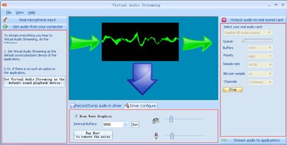 Virtual Audio Streaming hoạt động tương tự như một card âm thanh ảo “loopback”, có khả năng thiết lập các kênh ảo kết nối giữa các ứng dụng âm thanh khác nhau. Chẳng hạn, bạn có thể truyền tải âm thanh từ RealPlayer vào một bộ mã hóa MP3 mà không gây suy giảm chất lượng âm thanh.