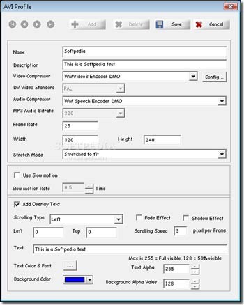 Phần mềm này cho phép chuyển đổi video sang định dạng AVI với nhiều codec khác nhau, chẳng hạn như DIVX và DV Video. Ngoài ra, người dùng có thể tùy chỉnh video bằng cách thêm các hiệu ứng như làm chậm chuyển động hoặc chèn banner văn bản cuộn trên màn hình.