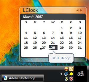 Một điểm đặc biệt của chương trình là tính năng đồng hồ và lịch. Khi bạn nhấp chuột trái vào mục hiển thị giờ trên khay hệ thống, lịch tháng LClock trong suốt sẽ xuất hiện. Nhấp đúp vào bất kỳ ngày nào, bạn có thể thêm ghi chú về các công việc cần thực hiện vào một thời điểm cụ thể.