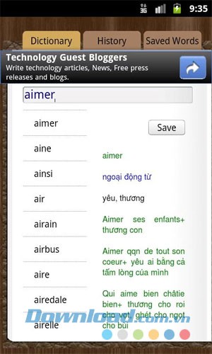 Ứng dụng cho phép tra cứu từ ngữ bằng cả phiên bản có dấu và không dấu, giúp người dùng dễ dàng tìm kiếm ngay cả khi không có bàn phím tiếng Việt.