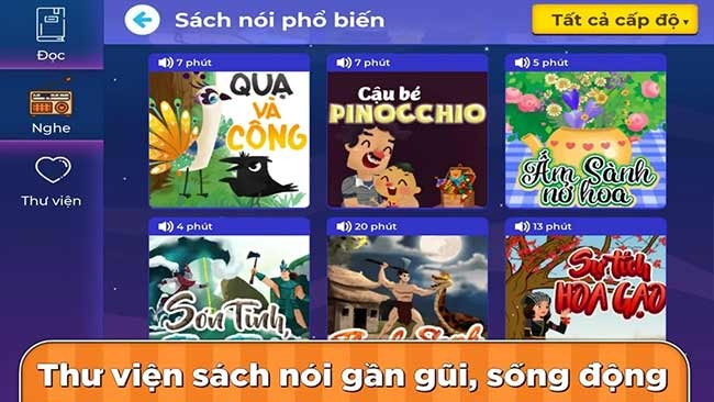 Ứng dụng hỗ trợ giọng đọc chuẩn mực, đáp ứng nhu cầu của cả hai miền Bắc và Nam, giúp bé làm quen với nhiều giọng điệu khác nhau.