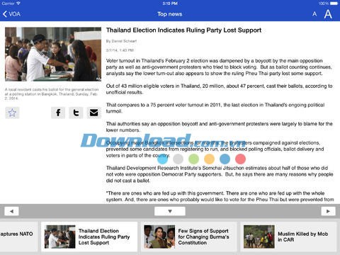 VOA for iOS mang đến cho người dùng các thiết bị iPhone, iPad hoặc iPod Touch một ứng dụng tin tức toàn diện, đáng tin cậy và hoàn toàn miễn phí.