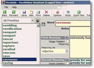 Ứng dụng cho phép người dùng xây dựng cơ sở dữ liệu từ vựng cá nhân, phục vụ cho việc học tập và ôn luyện. Đồng thời, Vocabula còn có tính năng nhắc nhở từ vựng thông qua cửa sổ pop-up.