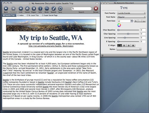 VoodooPad tự động thiết lập liên kết giữa các trang, từ đó xây dựng một trang web cá nhân dành riêng cho bạn. Những người đã từng sử dụng WikiWikiWeb chắc chắn sẽ cảm thấy quen thuộc và thích thú với VoodooPad.