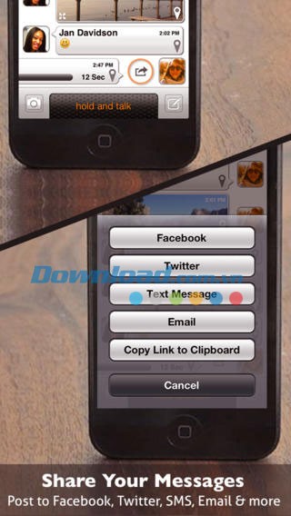 Thứ 3, mời bạn bè tải xuống Voxer thông qua tin nhắn SMS. Hãy mời người dùng các thiết bị iDevice tải ứng dụng Voxer và trò chuyện cùng bạn qua tin nhắn.
