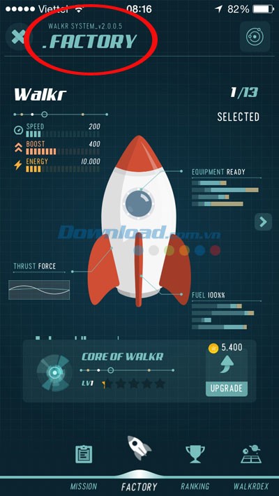 Chiếc tên lửa này được thiết kế và hoàn thiện trong suốt 11 năm, và bạn sẽ sử dụng Walking Energy để cung cấp nhiên liệu cho tàu không gian, bắt đầu hành trình khám phá hơn 50 hành tinh tuyệt đẹp như Caramel Apple, Octopus Cavern, Heart of Flames và nhiều địa điểm khác.