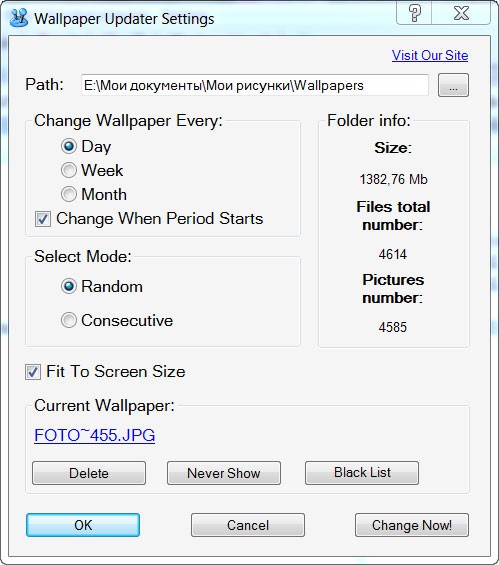 Wallpaper Updater 1.4 hỗ trợ người dùng lựa chọn một thư mục chứa các hình ảnh mong muốn để sử dụng làm hình nền máy tính.