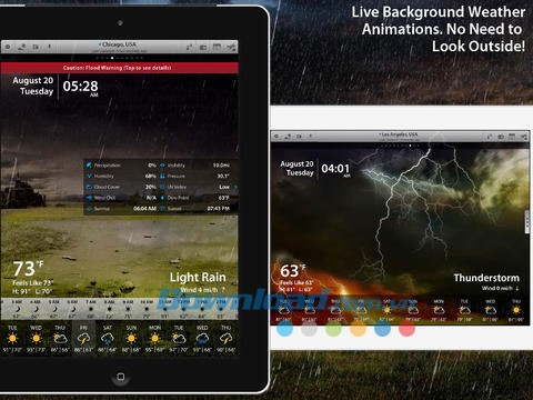 Dù trời nắng, tuyết rơi, bão hay mưa, bạn không cần phải nhìn ra ngoài cửa sổ để kiểm tra thời tiết. Weather Mate cung cấp hình nền thời tiết động tuyệt đẹp, phù hợp với điều kiện thời tiết thực tế. Bạn cũng có thể sử dụng ảnh cá nhân làm hình nền.