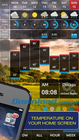 Weather On cung cấp dự báo thời tiết chi tiết theo giờ trong vòng 48 giờ. Với phiên bản cao cấp, bạn sẽ nhận được dự báo thời tiết trong 7 ngày tới.