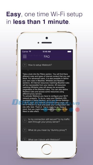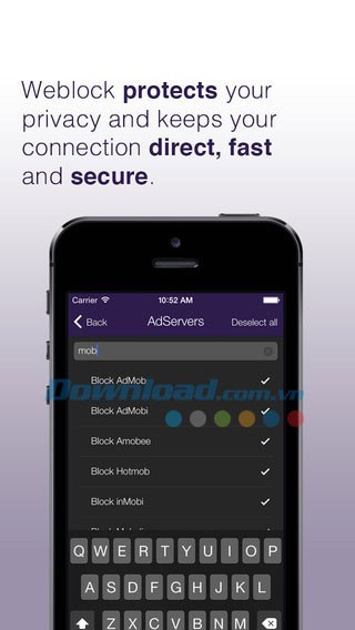 Ứng dụng này giúp tắt phần lớn quảng cáo hiển thị trên các trang web bạn truy cập từ thiết bị iOS, bất kể trình duyệt nào đang được sử dụng. Weblock tương thích với Safari, Chrome và nhiều trình duyệt khác, ngoại trừ Puffin Browser.