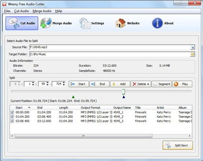 Weeny Free Audio Cutter là phần mềm được xây dựng với mục tiêu mang đến trải nghiệm cắt xén và ghép nối file audio dễ dàng cho người dùng. Ứng dụng cho phép bạn chia nhỏ các file âm thanh thành nhiều đoạn riêng biệt, hoặc kết hợp nhiều đoạn âm thanh rời rạc thành một file hoàn chỉnh.