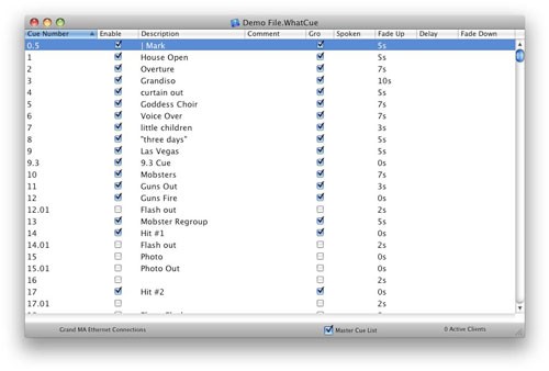 What Cue là phần mềm được phát triển để quản lý danh sách các lời chú thích, hướng đến đối tượng là các nhà thiết kế ánh sáng, người lập chương trình và các trợ lý của họ.
