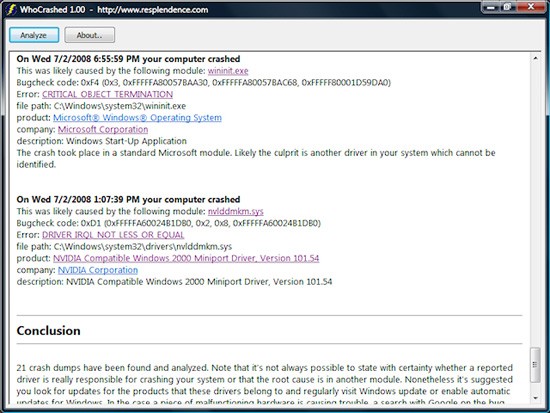 WhoCrashed giúp đơn giản hóa quá trình chẩn đoán và khắc phục sự cố, tiết kiệm thời gian và công sức cho người dùng.