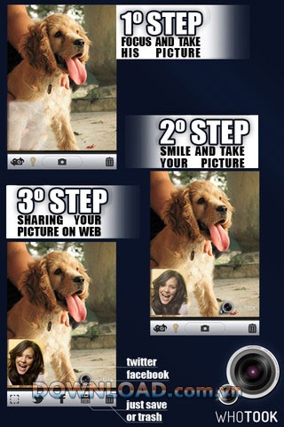 Ứng dụng Whotook for iOS mang đến một trải nghiệm độc đáo, cho phép hình ảnh của người chụp được hiển thị trực tiếp trên chính bức ảnh đã tạo ra.