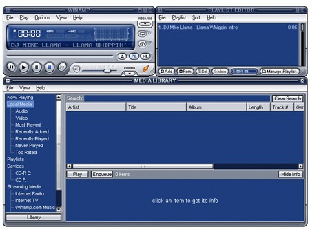 Thư viện nội dung Winamp: Khám phá các bài hát và video được chia sẻ bởi cộng đồng người dùng Winamp.