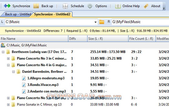 Phần mềm cung cấp hai phương thức đồng bộ hóa, đi kèm với nhiều tùy chỉnh linh hoạt.