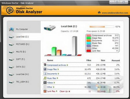Disk Analyzer: Giúp loại bỏ các khoảng trống không cần thiết trên đĩa cứng (chống phân mảnh), từ đó sắp xếp lại dữ liệu một cách hợp lý để tiết kiệm tối đa dung lượng.